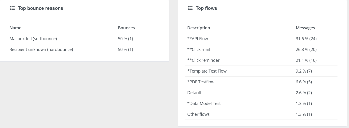 It also gives you an overview of the top bounce reasons for this source and the mnost sent used flows. You can go directly to the report for these flows by clicking on the name in the table.