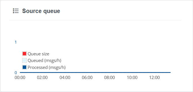 The source queue shows the queue size, the queued messages and the processed messages. In general, if this graphic is empty, everything is perfect. If you just submitted a very large number of emails in very small timeframe, a slight spike may appear but that should resolve over time.